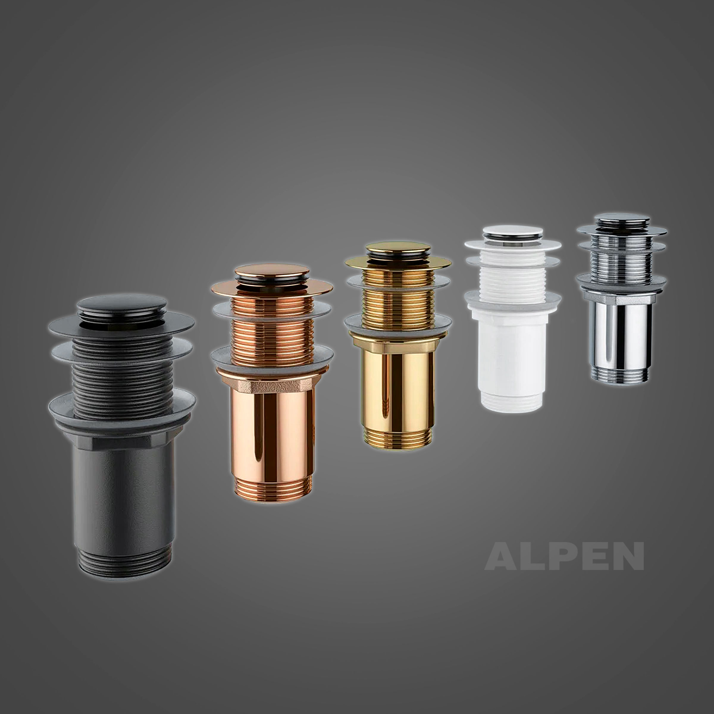 Металлический донный клапан для раковины, без перелива 2039422 ALPEN (матовый белый)