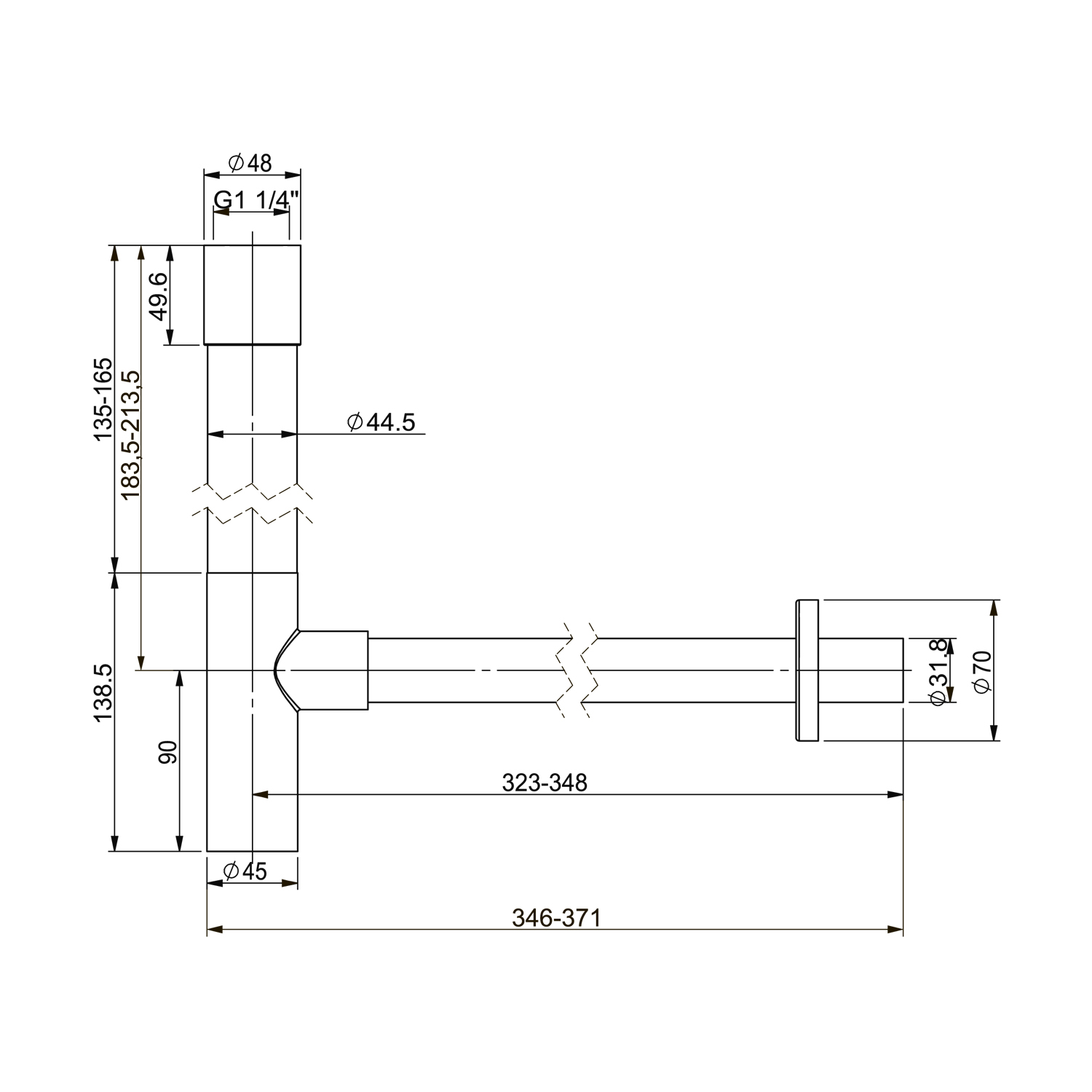 Металлический сифон для раковины 2040222 ALPEN (матовый черный)