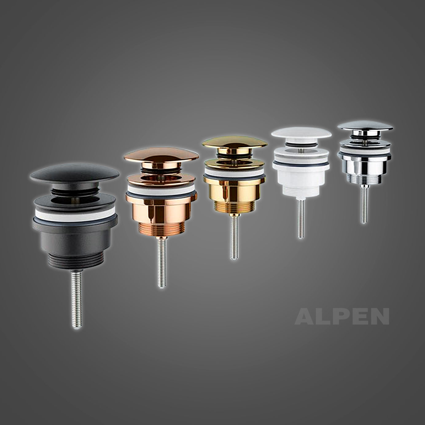 Универсальный металлический донный клапан для раковины, с/без перелива 2039522 ALPEN (матовый черный)