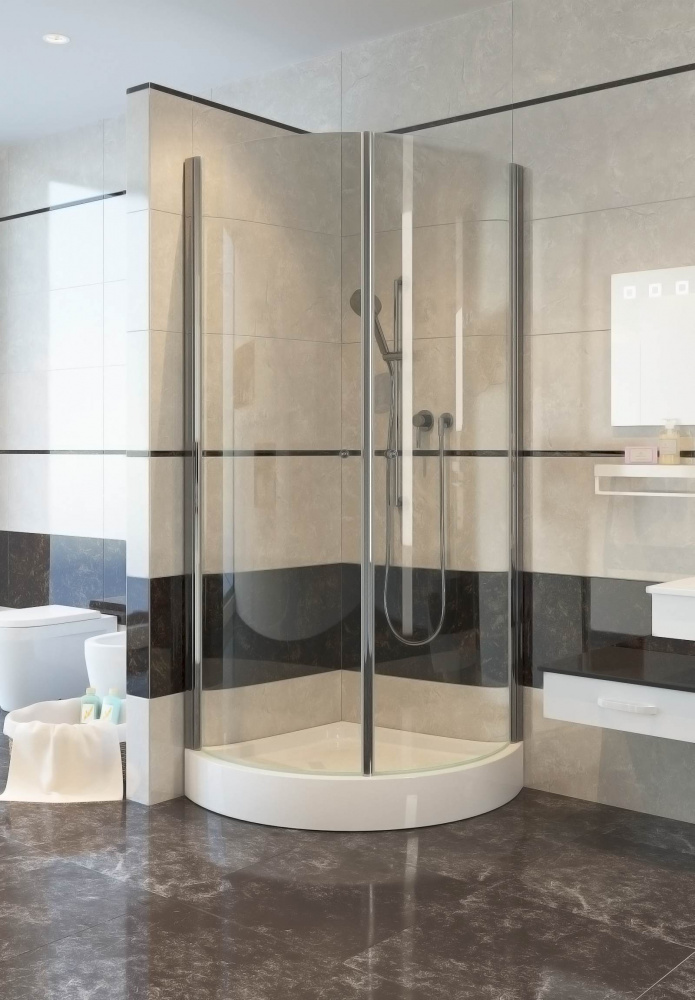 Представленная модель идеально впишется как в классический, так и авангардный дизайн ванной комнаты. Душевая дверца выполнена из высокопрочного стекла, отличается выпуклой формой и предназначена для угловых душевых поддонов.