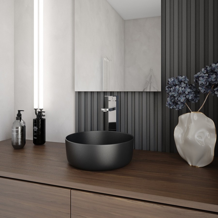 Раковина для ванной — это стильный и практичный аксессуар, изготовленная из премиального санфарфора, эта накладная раковина отличается высокой прочностью, долговечностью и стойкостью к воздействию влаги. Черный матовый цвет придает ей лаконичность и элегантность, позволяя легко сочетаться с различными стилями оформления ванных комнат.