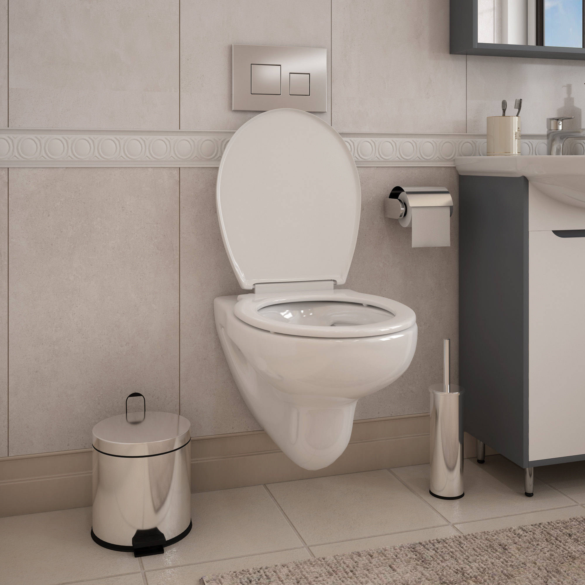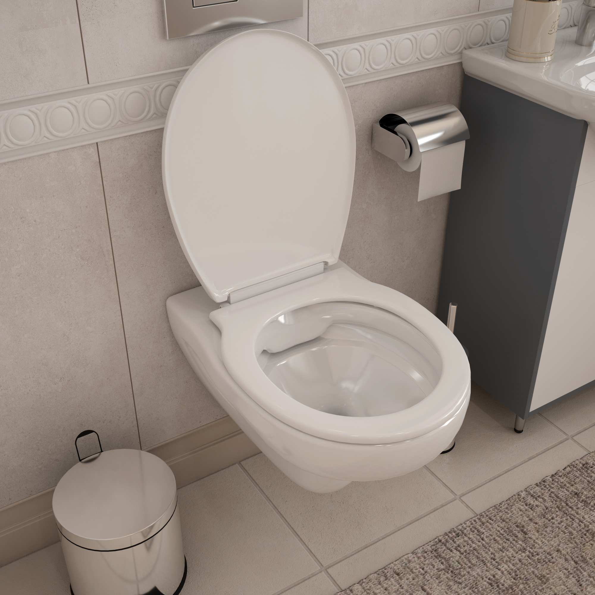 -- Характеристика сиденья: тонкое с крышкой, плавное закрывание;