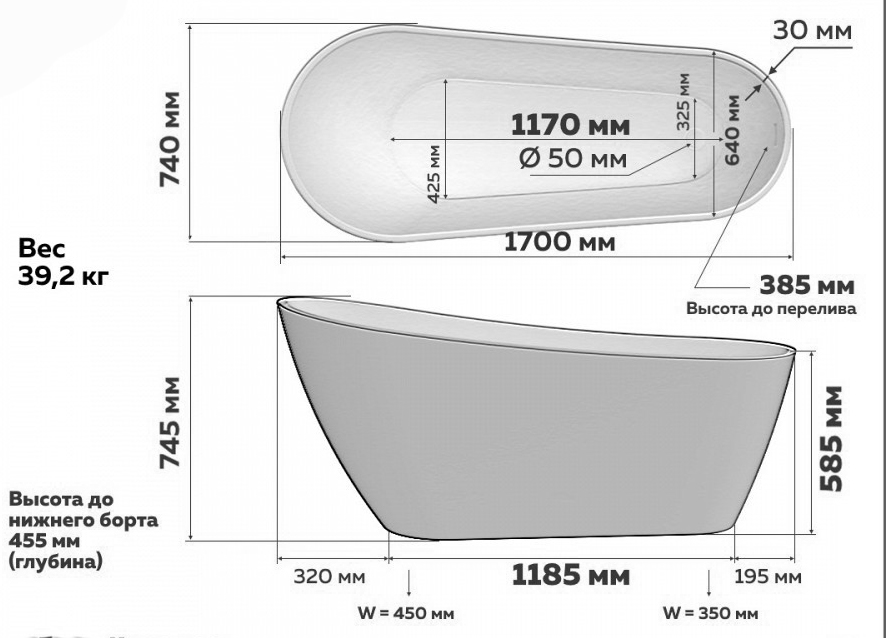 -- Монтаж ножек: на усиленные ребра на днище ванны, скрытый монтаж;