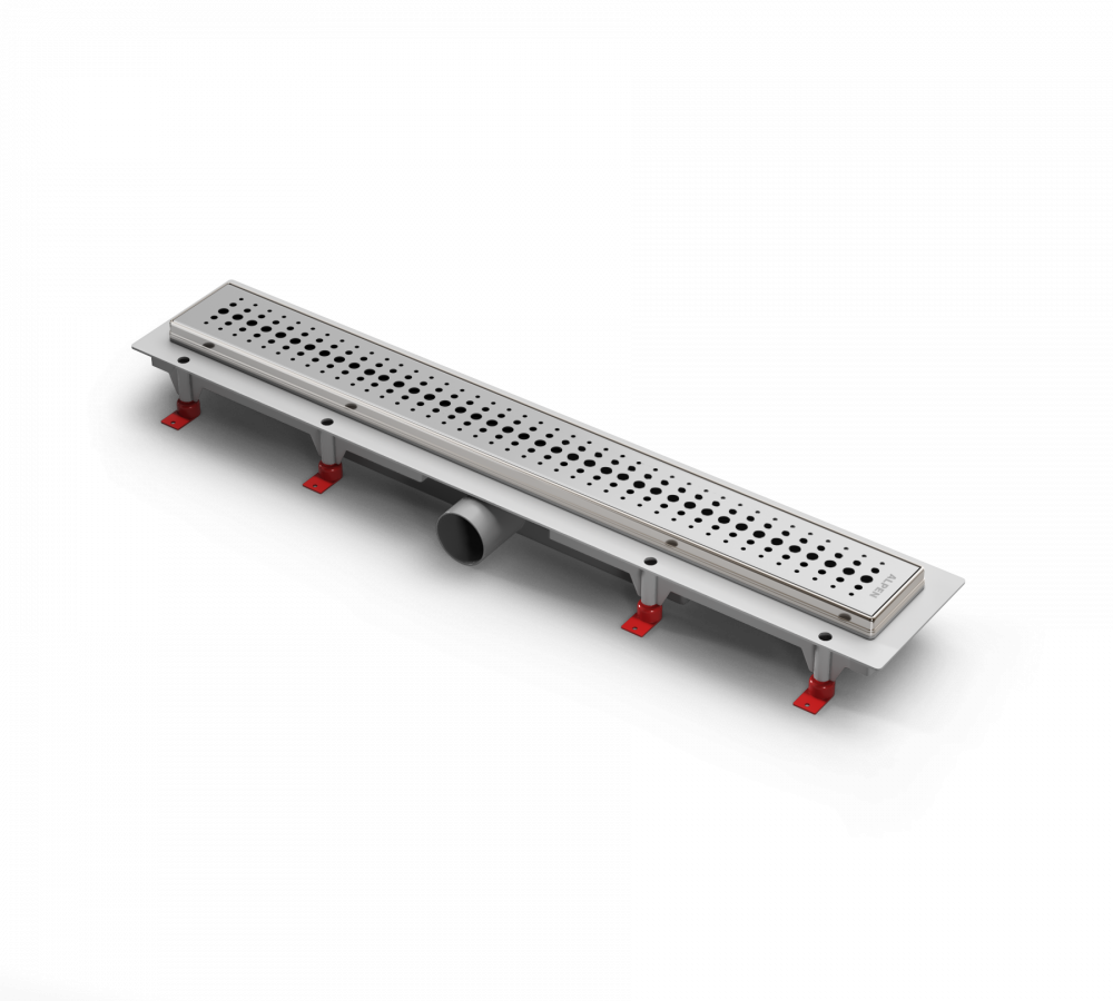 Водоотводящие желоба это атрибут для современного интерьера ванных комнат, сауны и зоны отдыха. Их преимуществом является простота установки, обслуживания и эксплуатация базбарьерной зоны. Монтаж можно производить как на открытых участках боксов и кабин, так и в близи стен. Нижняя часть изготовлена из ПП и ПС, решётка изготовлена из нержавеющей стали DIN 1.4301 K3 с возможной нагрузкой до 300 кг. Минимальная высота установки составляет 65 мм, желоб с регулировкой высоты.
