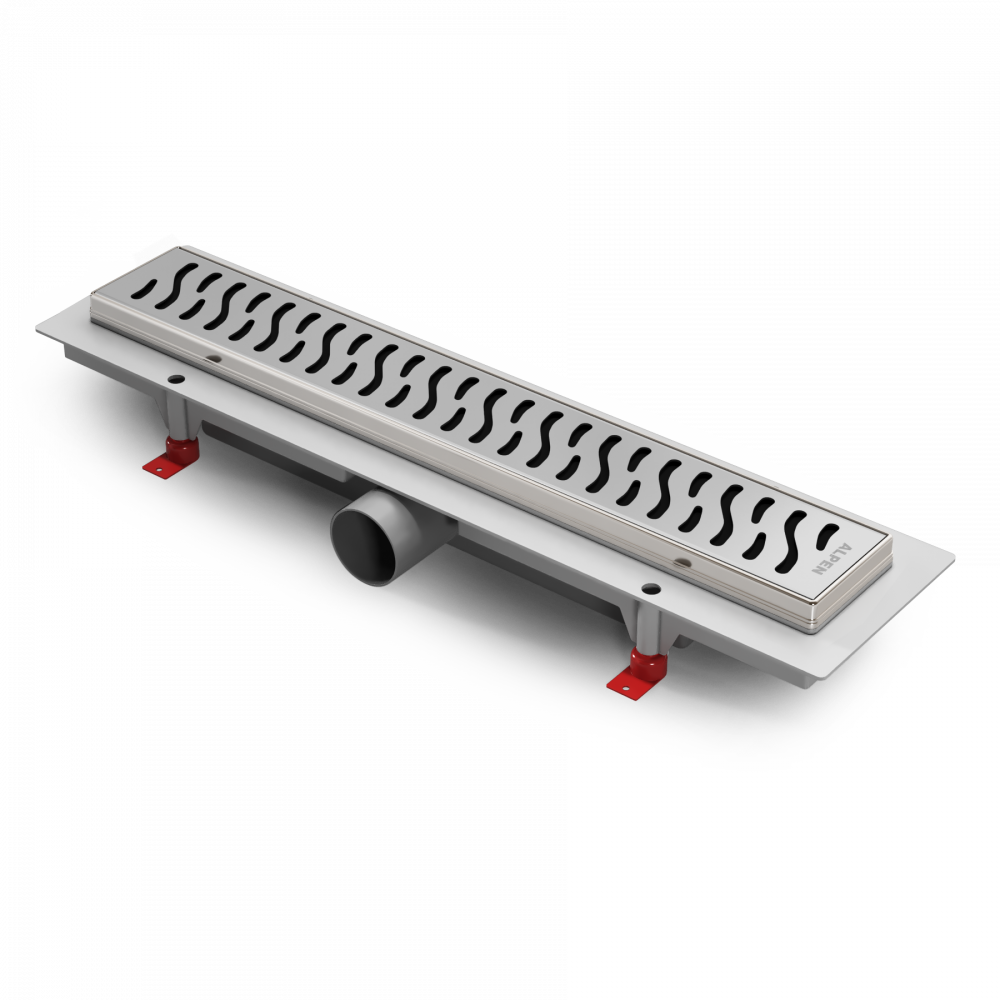 Водоотводящие желоба это атрибут для современного интерьера ванных комнат, сауны и зоны отдыха. Их преимуществом является простота установки, обслуживания и эксплуатация базбарьерной зоны. Монтаж можно производить как на открытых участках боксов и кабин, так и в близи стен. Нижняя часть изготовлена из ПП и ПС, решётка изготовлена из нержавеющей стали DIN 1.4301 K3 с возможной нагрузкой до 300 кг. Минимальная высота установки составляет 65 мм, желоб с регулировкой высоты.